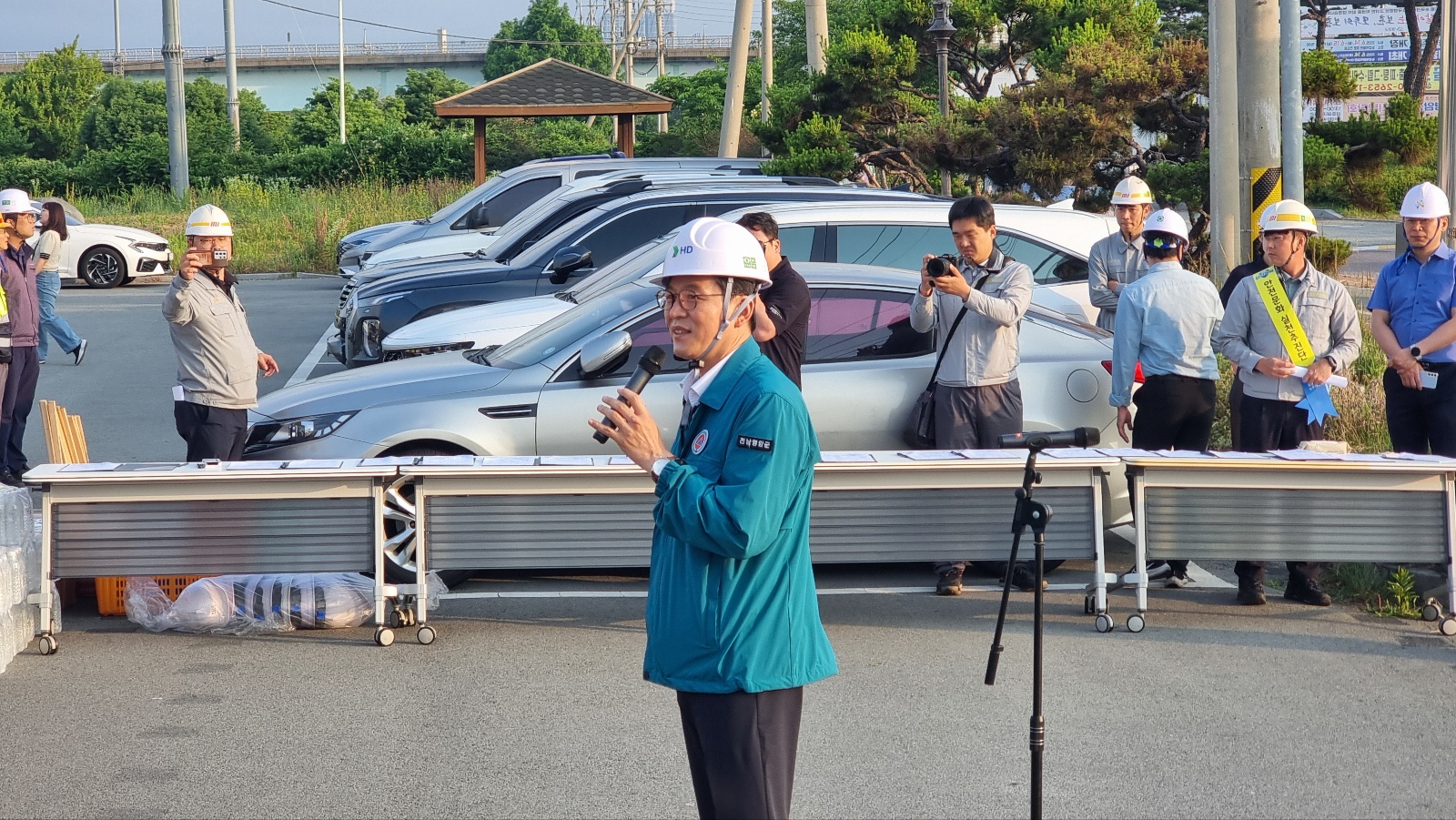현대삼호중공업 김재을 대표님, 대한조선 왕삼동 대표님, 한국산업안전보건공단 김송환 전남지역본부장님, 한국산업단지공단 김효곤 지사장님
